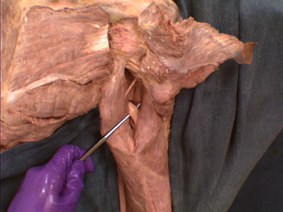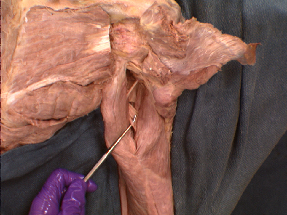 o medially - triceps muscle (the long head),