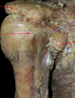 greater tubercle of the humerus , supraspinaous fossa of salpula *sits in the scapula almost