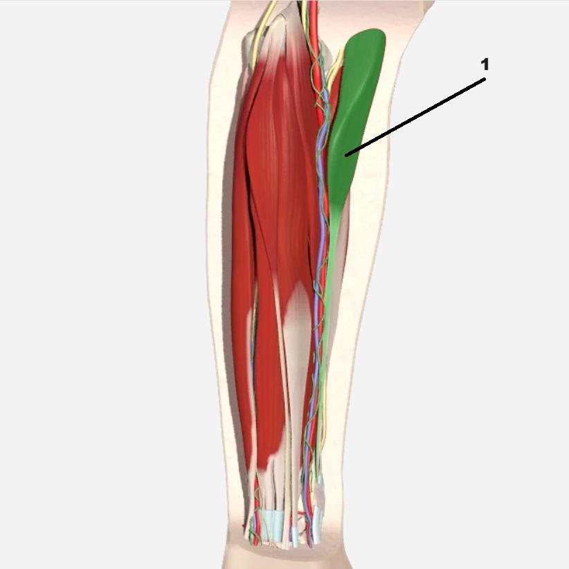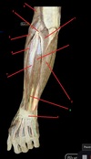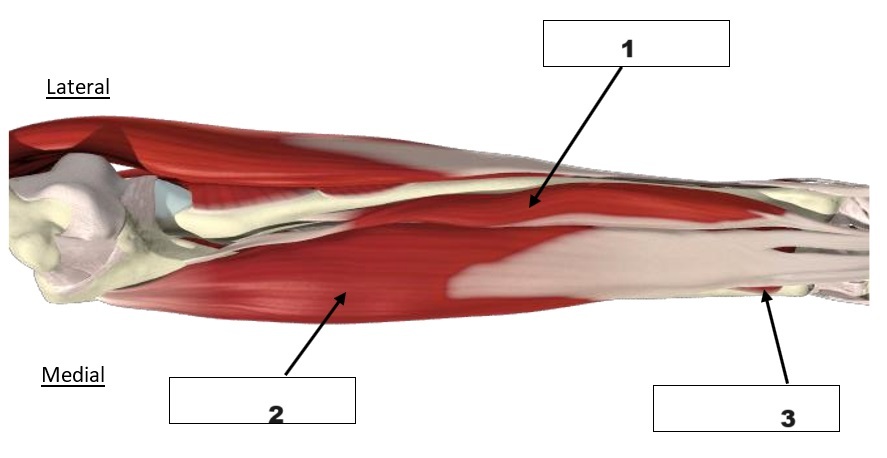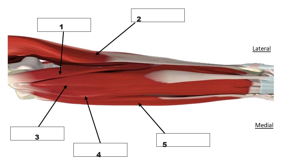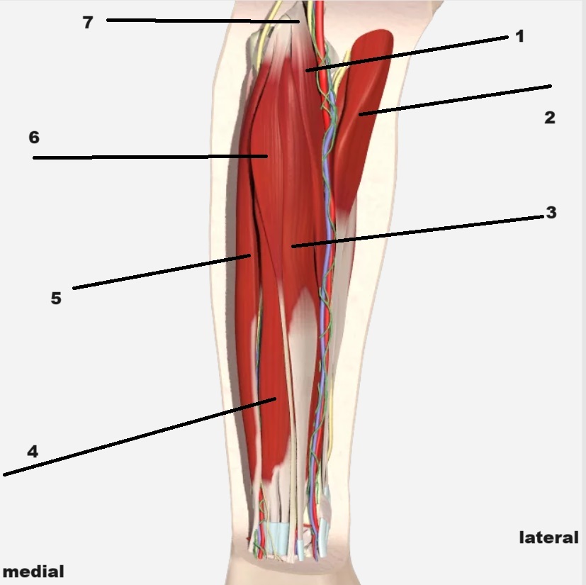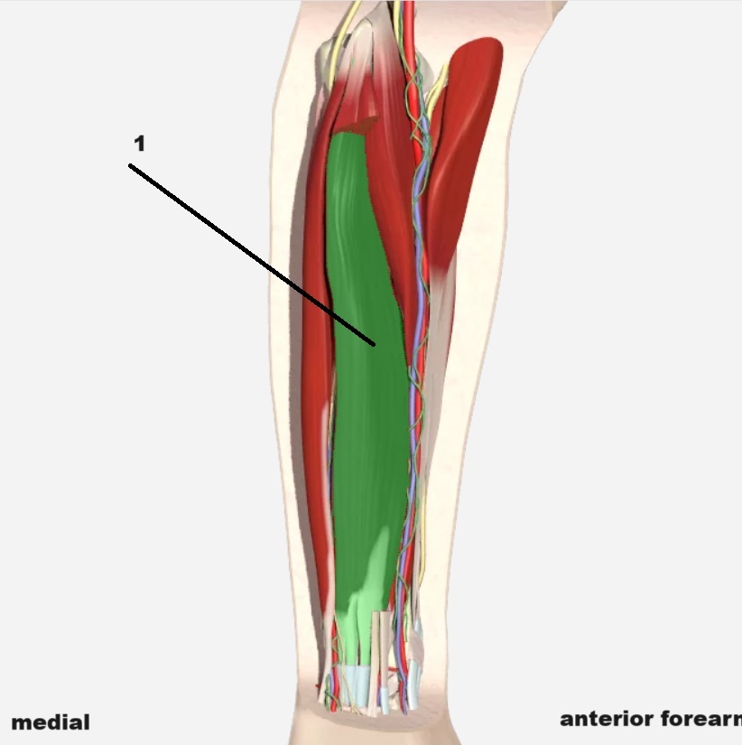only intermediate muscle (immediately deep to superficial flexors of the arm)