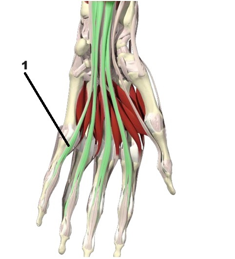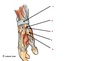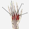 Which tendons give rise to the 4 intrinsic lumbrical muscles in the palm (anterior)?