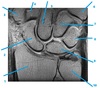 medial epicondyle of humerus (common flexor tendon) -> coronoid process of ulna