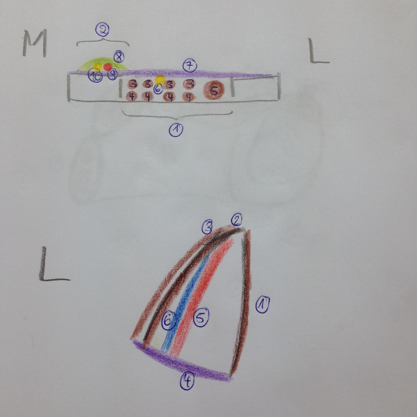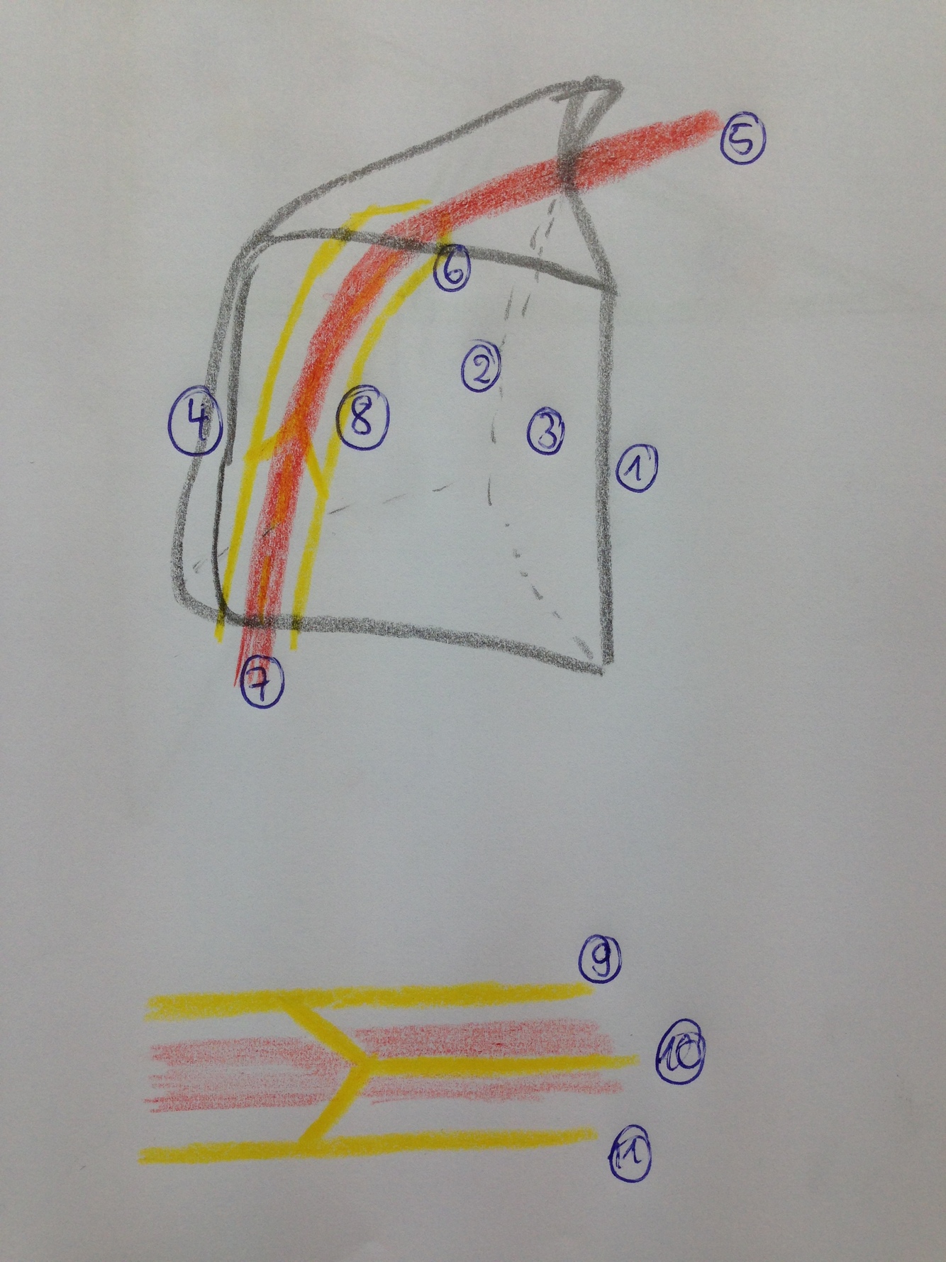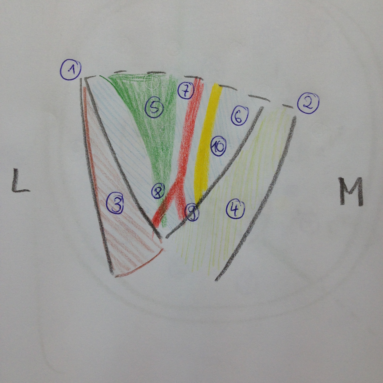 1) m. pectoralis major (-> plica axillaris ant.)/minor
