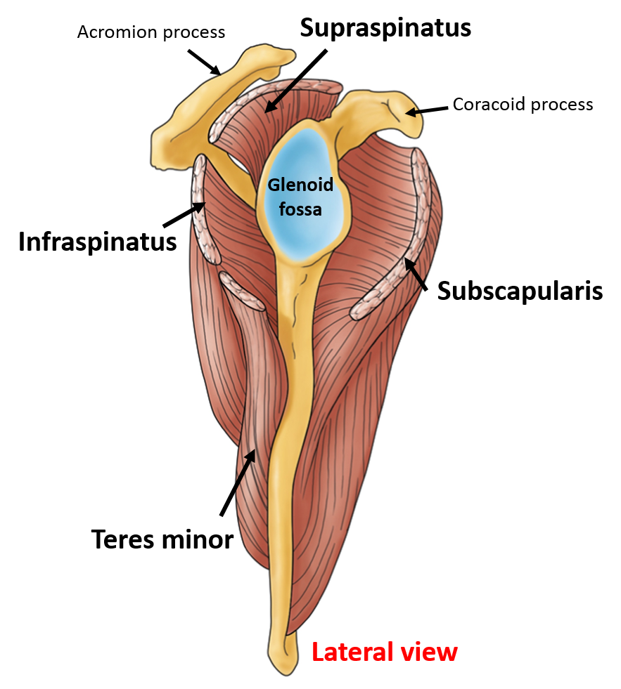 Supraspinatus, infraspinatus, and teres minor to greater tuberosity of humerus