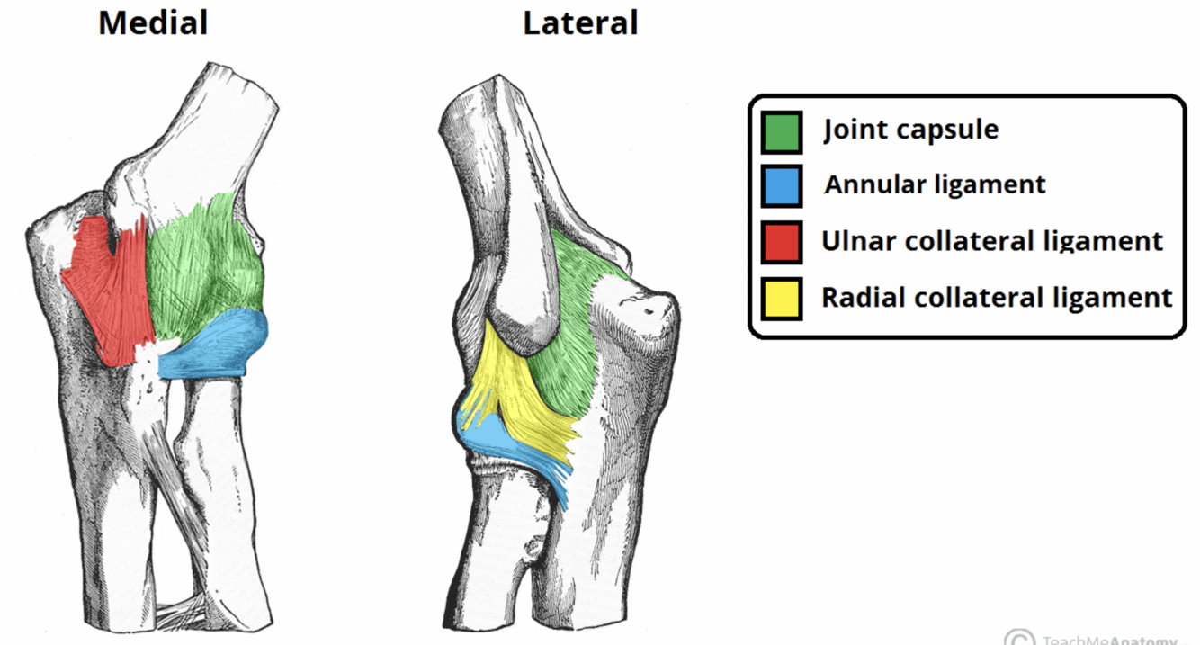 State the ligaments that strenghten the elbow joint