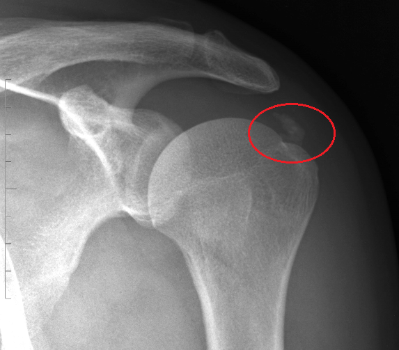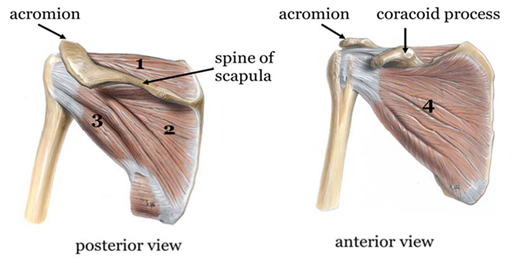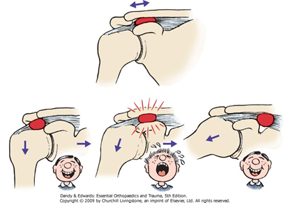 The tendons of the rotator cuff (usually the supraspinatus muscle) are compressed in the tight subacromial space during movement resulting in pain.