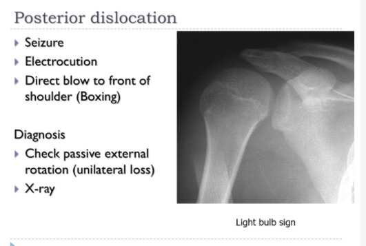 how may posterior shoulder dislocation be caused and how is the diagnosis made?