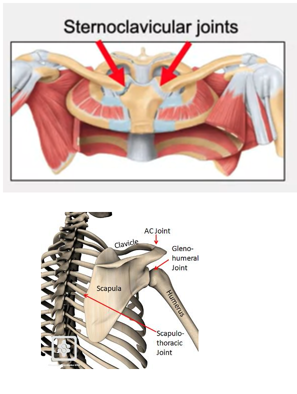 Scapulothoracic joint (STJ) - virtual joint, between the scapula and ribcage