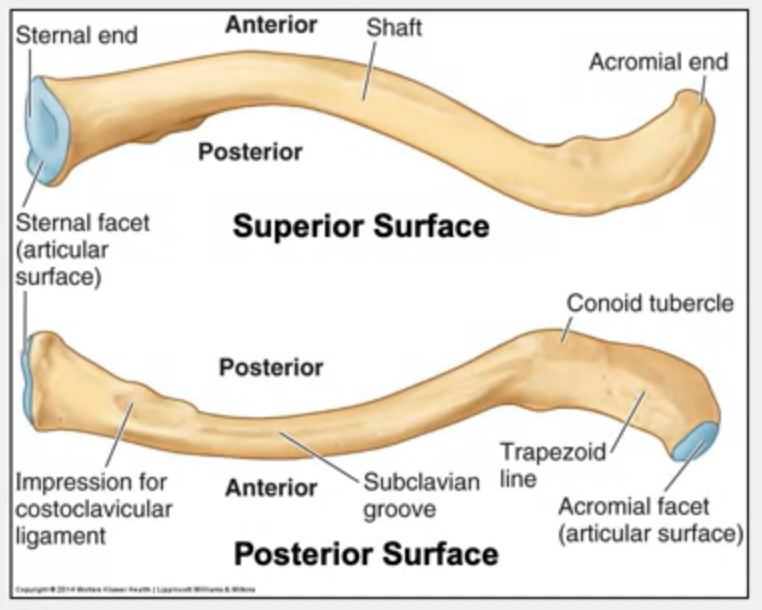 Sternal (medial) and acromial (lateral) ends