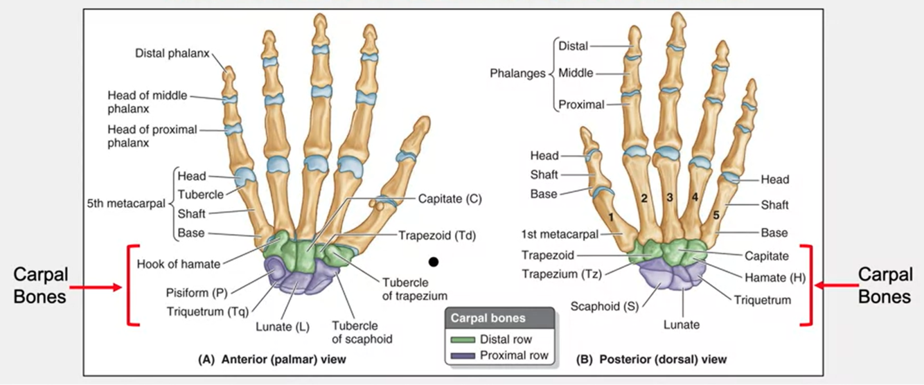Carpal bones - two rows of small bones on the wrist