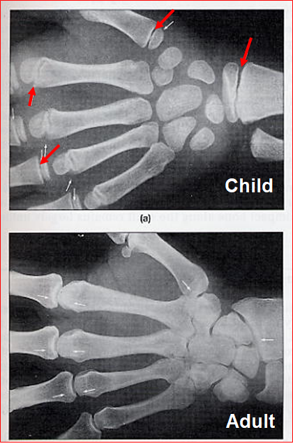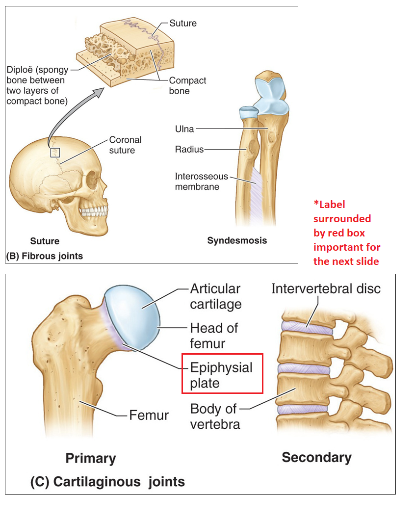 Temporary cartilaginous joints observed in babies, children and young adults that allow bone growth - when bone growth ceases, they ossify