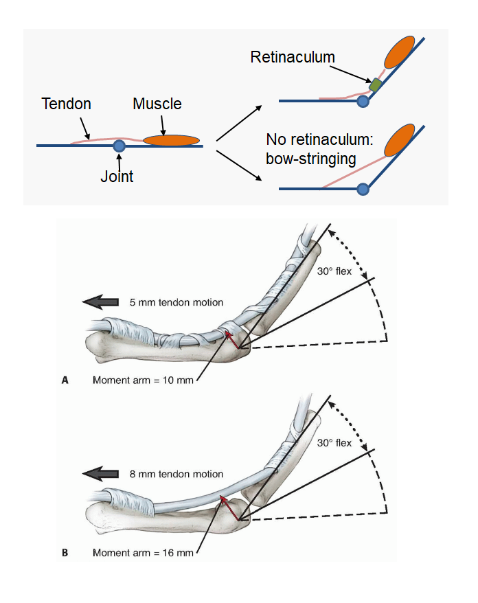 A fascial feature - thickened band of deep fascia found close to a joint to hold tendons down during muscle contraction to prevent bow-stringing, which might compromise function
