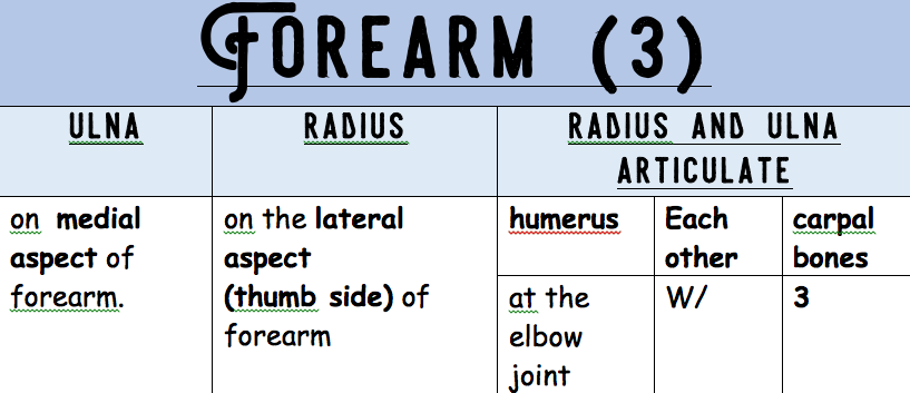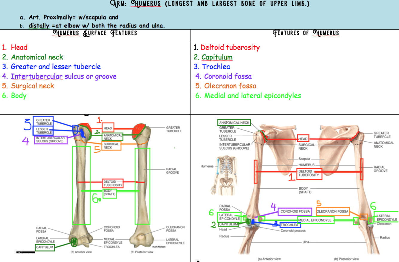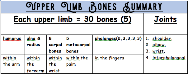 Upper Limb Bones Summary: