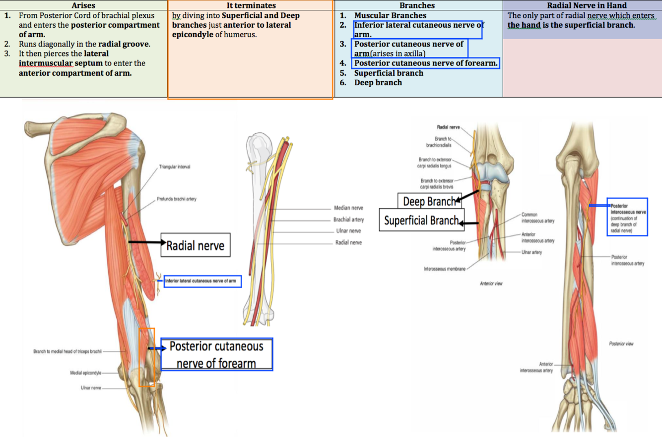The only part of radial nerve which enters the hand is the superficial branch.