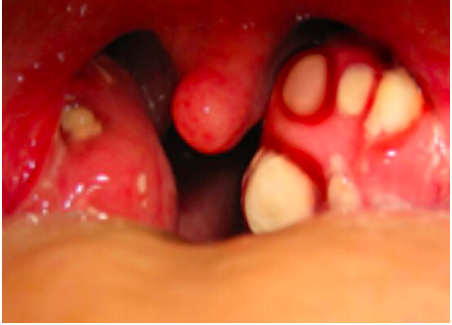 Give one point for: Tonsilar exudates, Fever, Absence of cough, Swollen lymph nodes