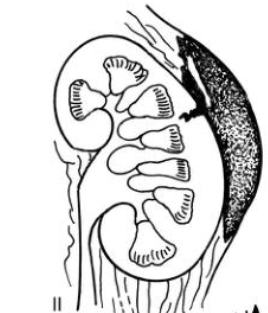 Krwiak okołonerkowy lub rozdarcie miąższu <1cm