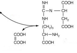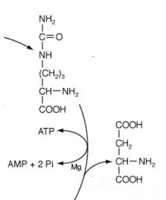 aspartate (asp) and citruline produce arginosuccinate (seen below) with ATP