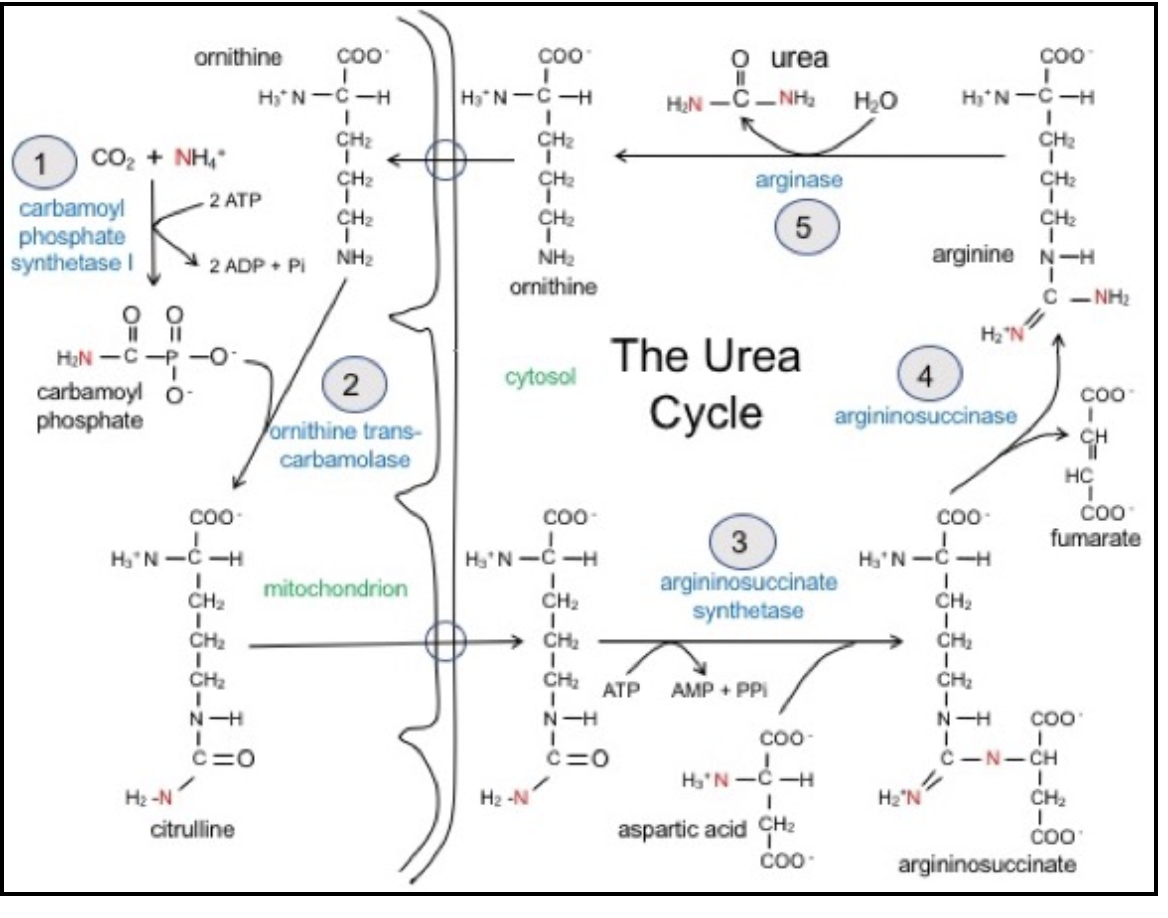 The urea cycle begins and ends with ornithine, thus the term cycle.