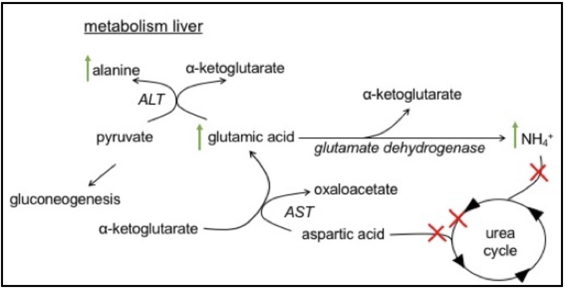 The situation is a little more complicated with the early urea cycle defects where glutamic acid, alanine and lysine accumulate.