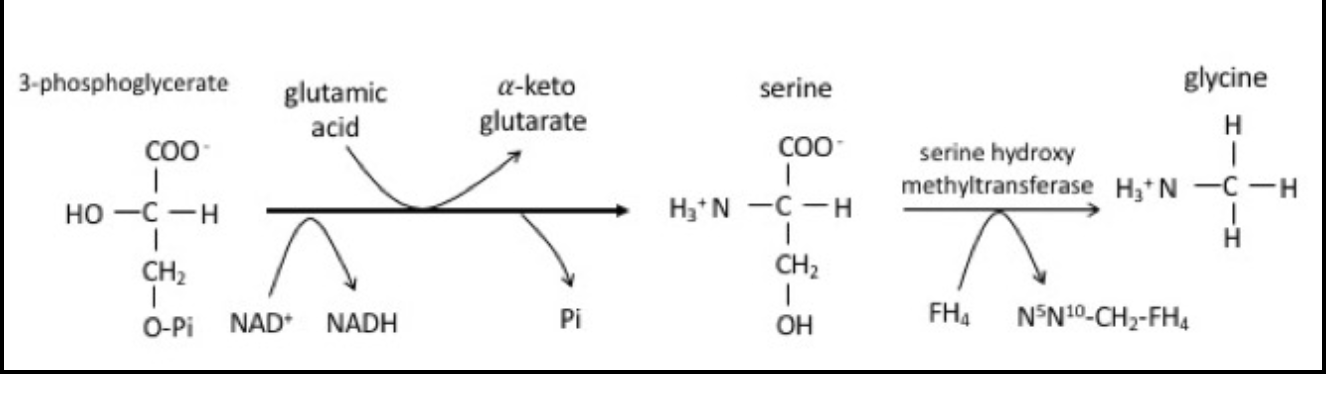 Glycine is a non-essential amino acid that is replenished from serine, which itself is derived from the glycolytic intermediate 3-phosphoglycerate