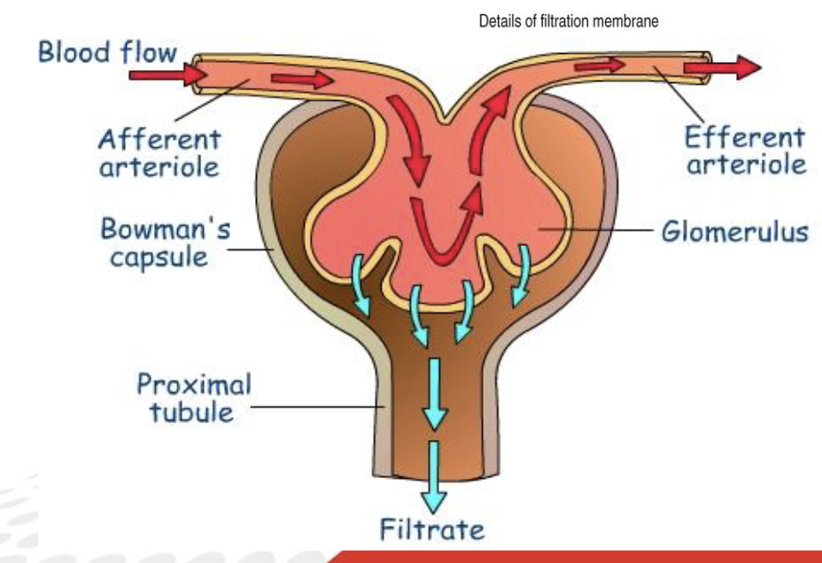 * The afferent arterioles supply blood through the high-pressure glomerulus capillaries