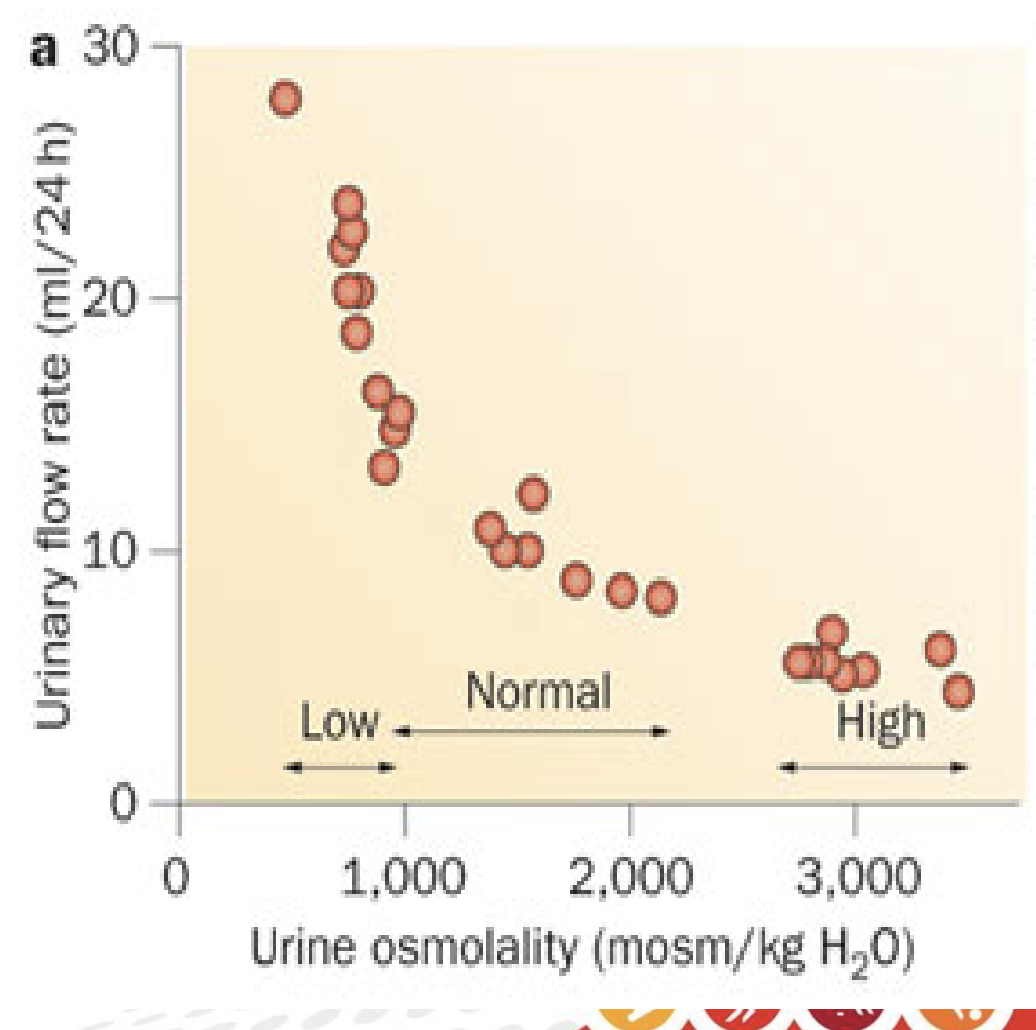 ↓ Filtrate osmolarity (hypoosmotic): juxtaglomerular cells relax → ↑ GFR → ↑ urine formation → ↑ water loss → ↑ blood osmolarity