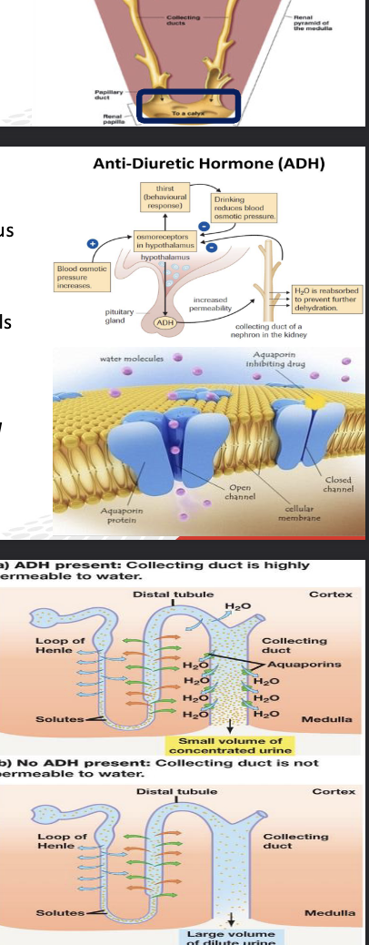 * Each duct collects filtrate from several nephrons for final modification