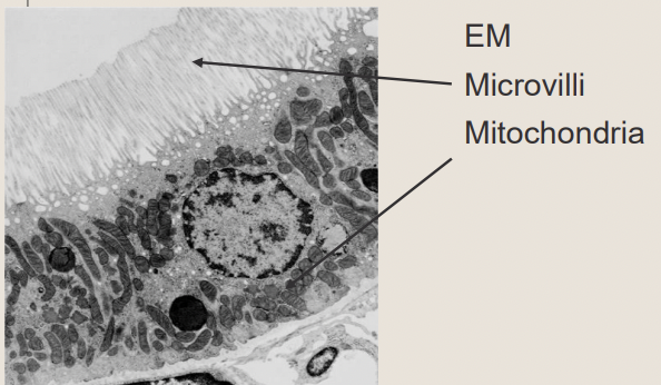 long microvilli - maximise surface area for reabsorption and secretion