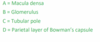 macula dense, juxtaglomerular cells and mesangial cells