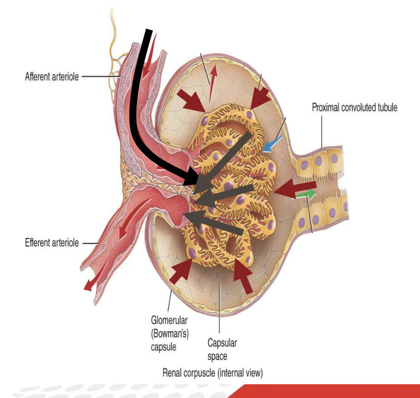 The only pressure moving fluid across the capillary wall into the lumen of Bowman’s space is … pressure