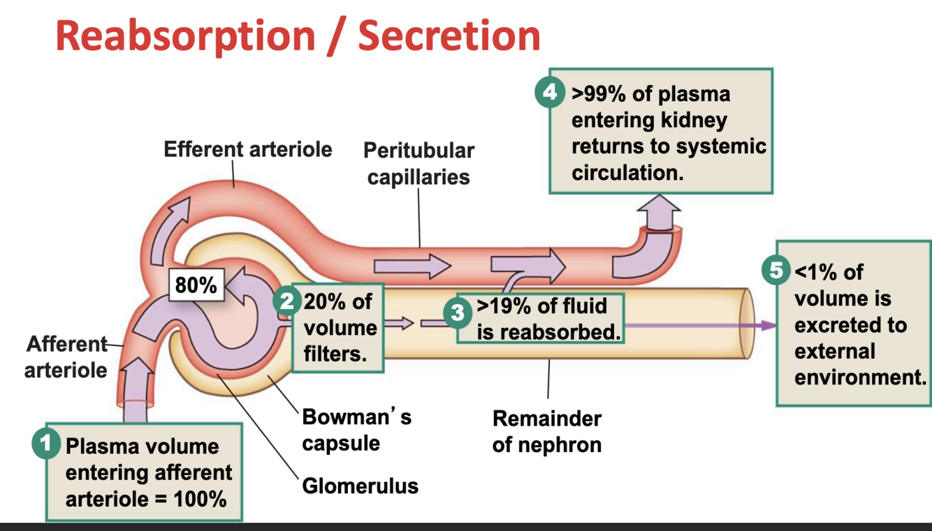 * >…% of this filtrate is returned to the circulation by reabsorption