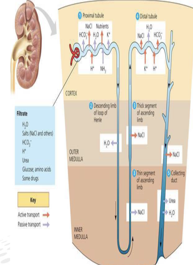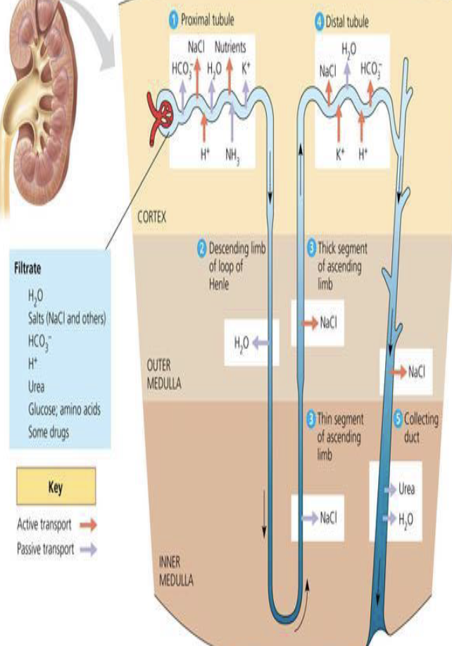 * These changes are accomplished by osmosis via … in the descending loop and … in the ascending loop