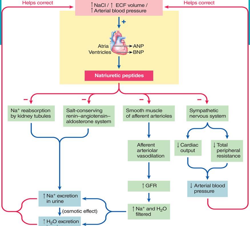 •Atrial natriuretic peptide (ANP) and brain natriuretic peptide (BNP) produce natriuresis