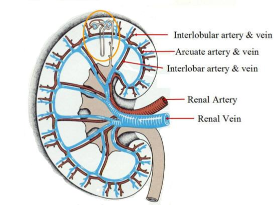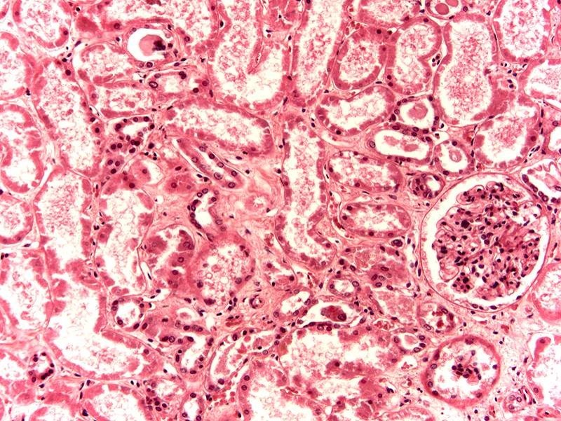 Papillary necrosis (where collecting ducts empty into the pelvis)