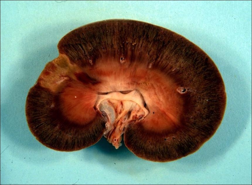 Renal cortical necrosis - kidney is diffusely damaged due to microthromi.