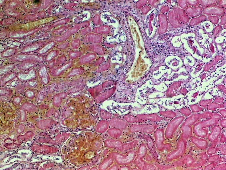 Acute multifocal to coelescing severe haemorrhage of the kidney