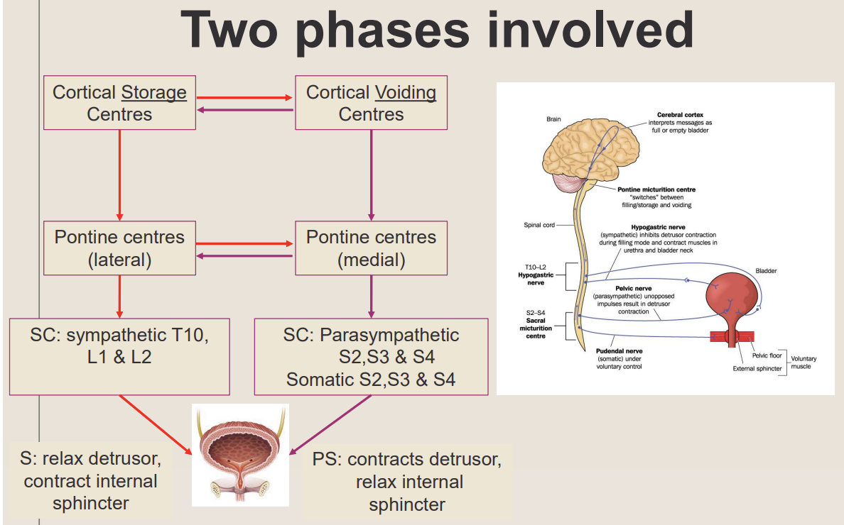 What is entailed in the two phases of micturition?
