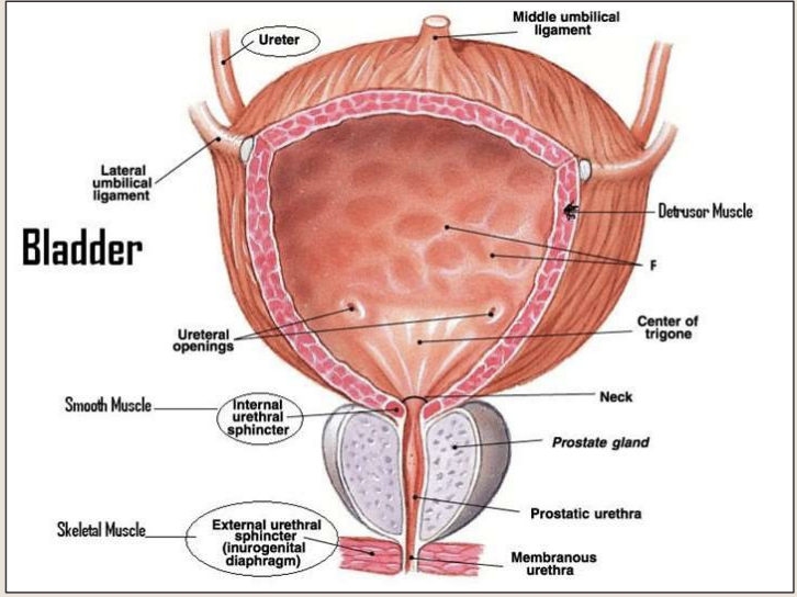 What are the important three muscle components of the bladder?