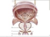 cortical storage centres -> pontine storage (lateral) -> sympathetics (T10 - L2)