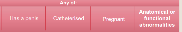- people with anatomical or functional abnormalities of the urinary tract, indwelling catheters