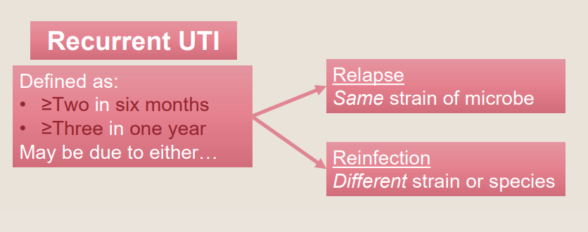 In regards to recurrent UTIs, what is the difference between relapse and reinfection?