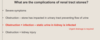List 6 anatomical or functional abnormalities which would complicate a UTI, categorising them in ‘obstructive’, ‘renal’ and ‘procedural’.
