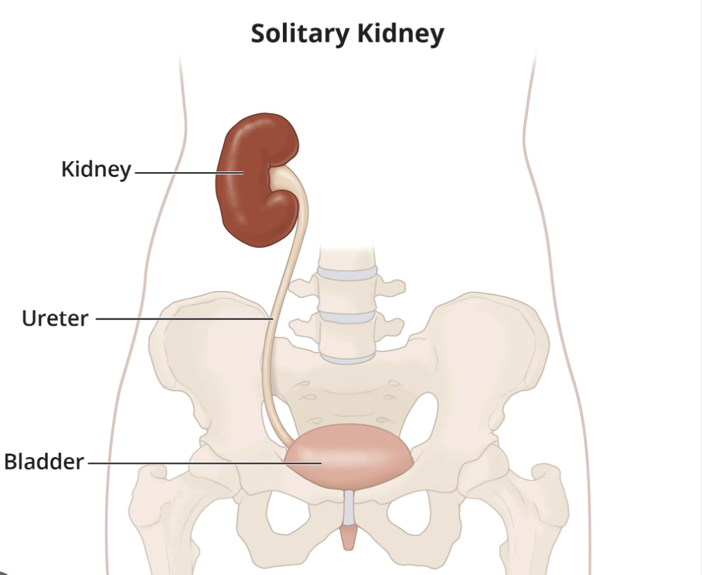 Children born with one kidney (unilateral renal agenesis) are often healthy, don’t have symptoms and don’t need treatment. However, they may develop problems like high blood pressure and kidney disease in adulthood. Newborns with no kidneys (bilateral renal agenesis) usually can’t survive outside the uterus. A gene mutation often causes renal agenesis.