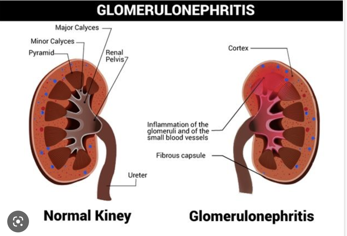 Glomerulonephritis is inflammation of the tiny filters in the kidneys (glomeruli). The excess fluid and waste that glomeruli remove from the bloodstream exit the body as urine. Glomerulonephritis can come on suddenly (acute) or gradually (chronic)