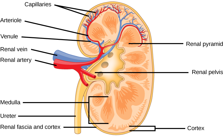 Describe the basic internal structure of the kidney