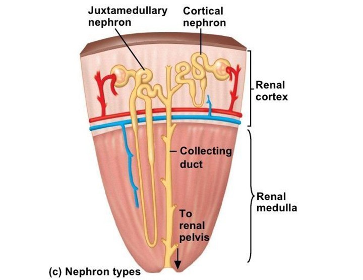 Name the two different types of nephrons and describe them