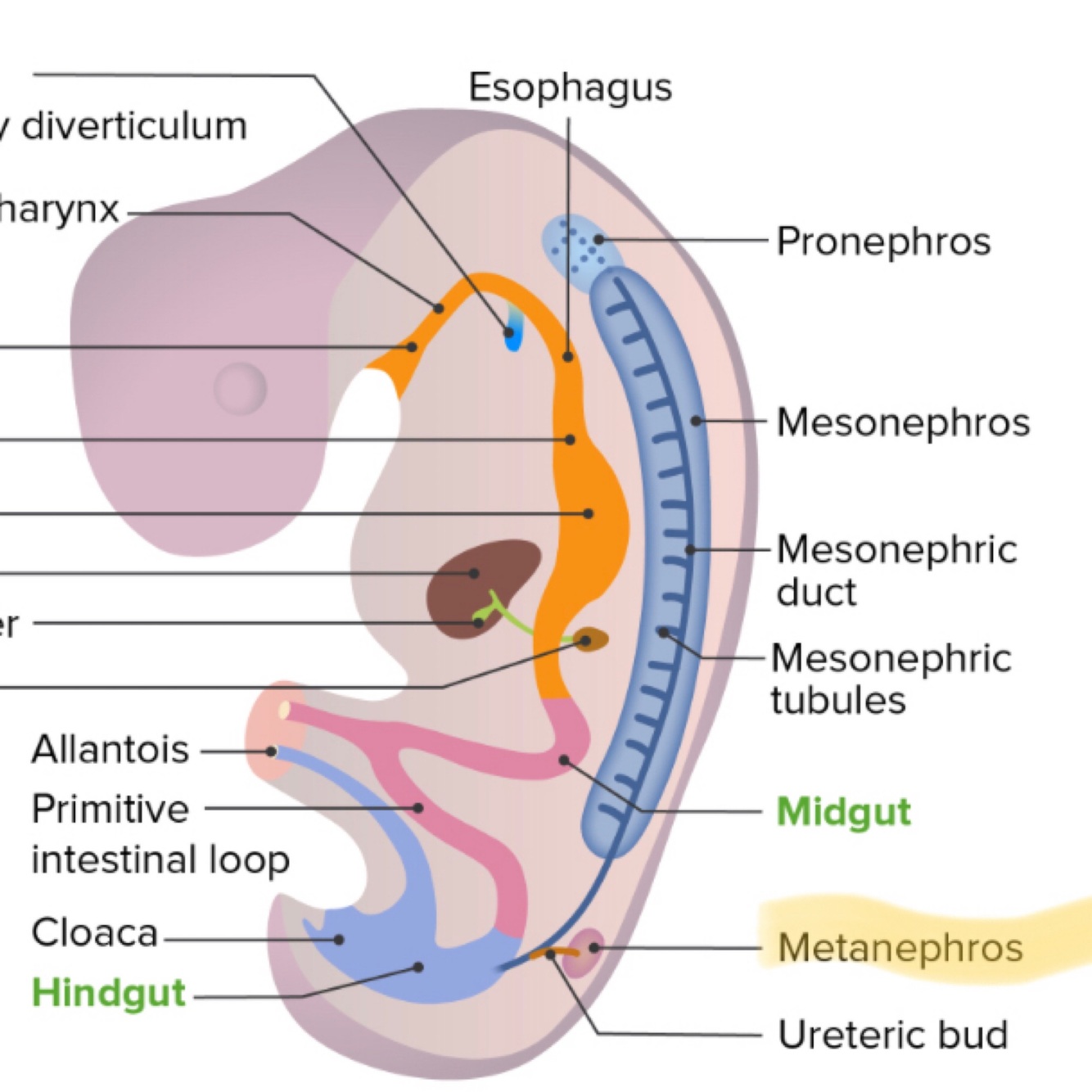 Collecting duct, papillary duct, minor calyx, major calyx, renal pelvis, ureter