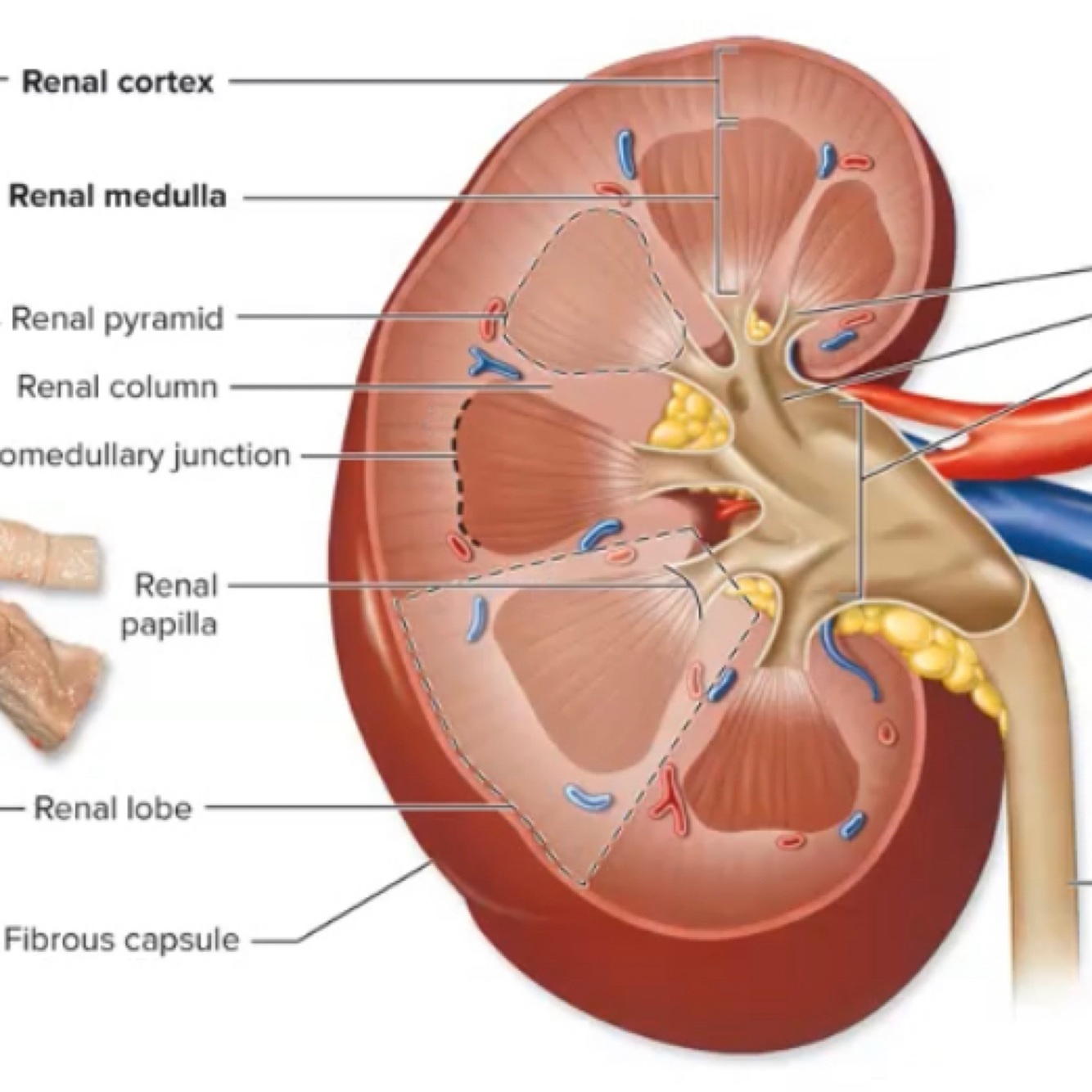 Renal pyramids are located in which part of the kidney, renal cortex or renal medulla?