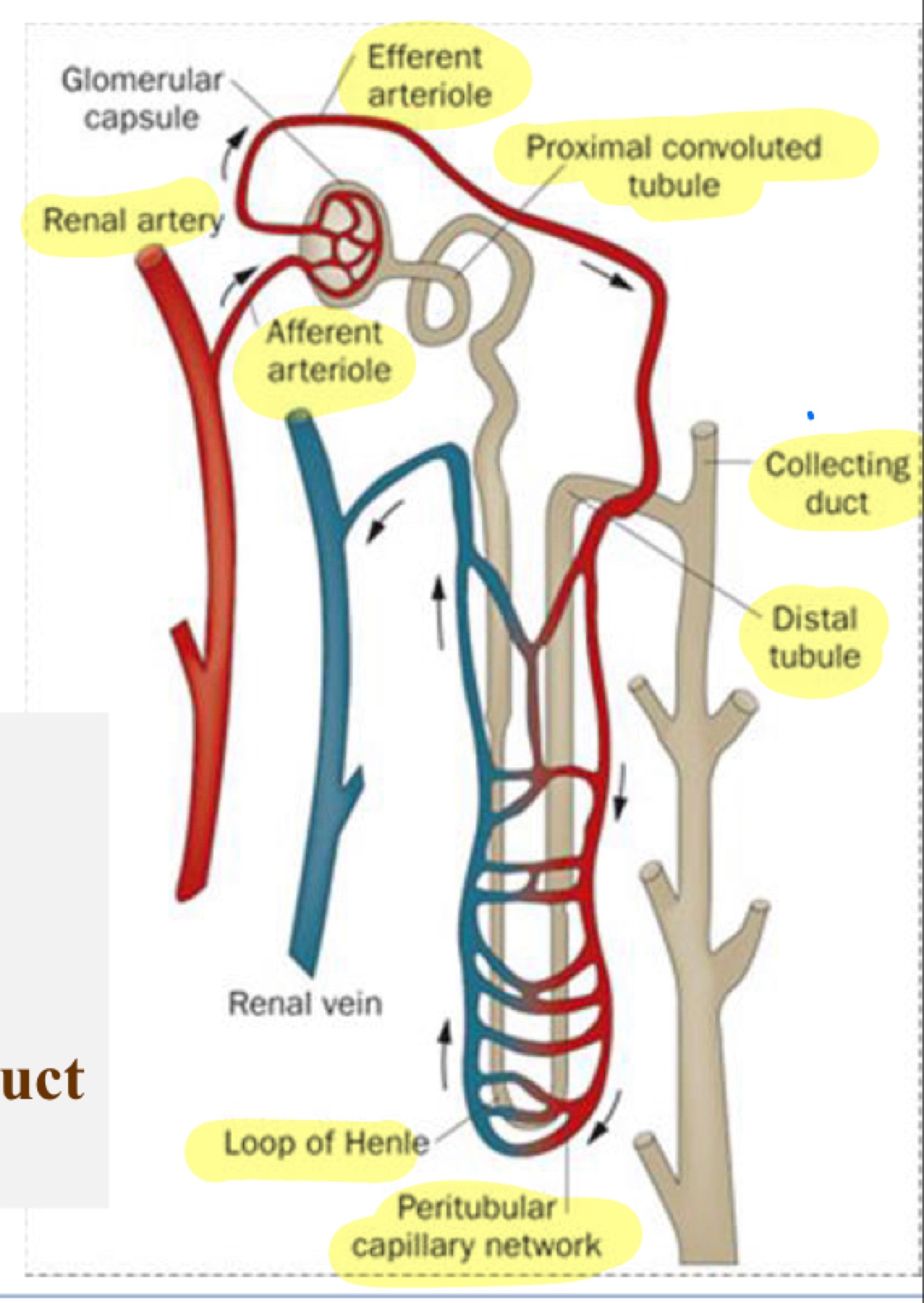 Nephron filtrate flow in tubules