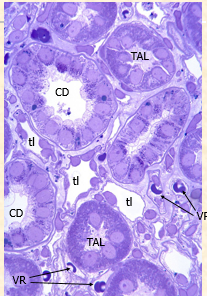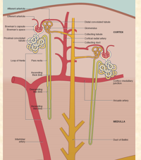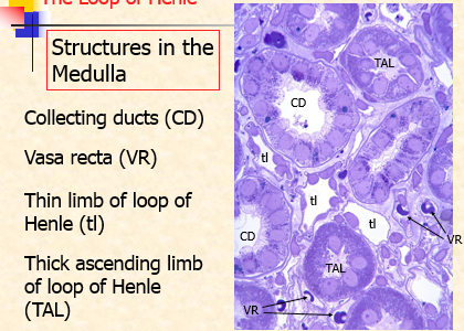 Blood vessels moving normally to the medulla would flush away all the salts, destroying the osmotic gradient. This has been solved by loops of blood vessels (vasa recta) dipping into the medulla and returning to the cortex.