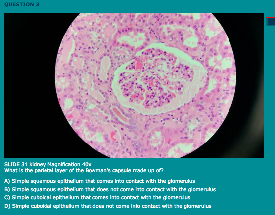 B) Simple squamous epithelium that does not come into contact with the glomerulus